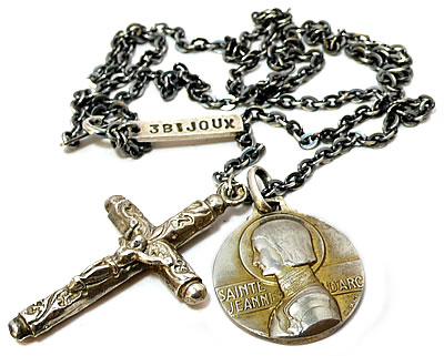 フランスの国民的英雄であり、聖女でもある「ジャンヌ・ダルク」が描かれたシルバーのアンティークチャームです。