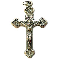 クロスの先端にそれぞれ異なる絵柄がデザインされた素敵なアンティーククロスです。パリで見つけたものですが、裏面には【ITARY】の刻印があります。