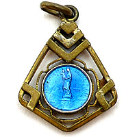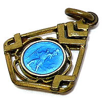 とても精巧に出来たゴールドフレームにエメラルドブルーの装飾が表裏共に施された素適なアンティークチャームです。