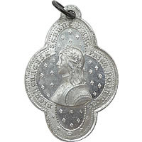 フランスの国民的英雄であり、聖女でもある「ジャンヌ・ダルク」が描かれたアルミ製のアンティークチャームです。