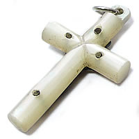 とても小さなホワイトシェルのアンティーククロスです。シンプルなデザインなので小さめのチャームとの相性が良さそうです!