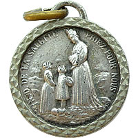 表裏ともに丁寧に描かれた彫刻が印象的で、フレームのデザインも素敵なアンティークチャームです。