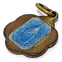 花形のフレームとブルーのエナメルとのコントラストが素敵なアンティークチャームです。裏面には【LISIEUX】の刻印があります。