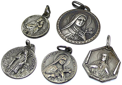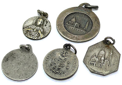 デザイン性に優れたシルバーカラーのメダイを中心に集めた素敵なアンティークメダイ5点セットです。