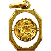 フランスの国民的英雄であり、聖女でもある「ジャンヌ・ダルク」が描かれたゴールドのアンティークチャームです。表裏共にとても美しいデザインです。