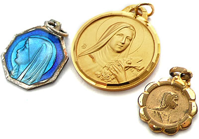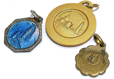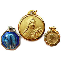 コンディションの良い素敵な【Lisieux】のゴールド製メダイや聖地ルルドのメダイのセットです。