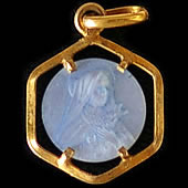 淡いブルーのシェルに描かれたリジューの聖テレジアがとても素敵なアンティークメダイです。