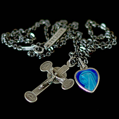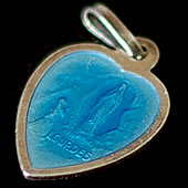 LOURDESの刻印が入ったハート型のアンティークメダイです。