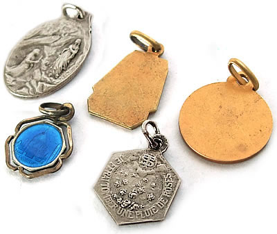 大小様々にデザイン性の異なったデザインのアンティークメダイの5点セットです。表裏共に丁寧に描かれたメダイやゴールドのメダイなど、素敵なメダイばかりを厳選した貴重なセットです。