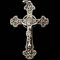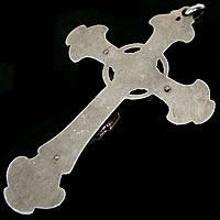クロス全体のシルエットがとても美しいアンティーククロス(シルバー製)です。1900年代前半に製作され、細部まで丁寧に描かれた彫刻デザインは、フランスの古きよき時代を彷彿させる素晴らしい作品です。