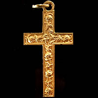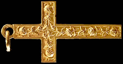 クロス全体に描かれた薔薇の彫刻がとても美しくて素敵なアンティーククロスです。Cカン部分に【FRANCE】の刻印があります。