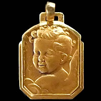 小さいデザインながらも、丁寧に描かれた穏やかな表情のエンジェルが素敵なアンティークメダイです。