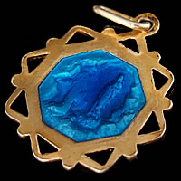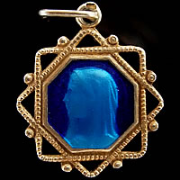 シャンパンゴールドの可愛いフレームデザインが特徴的なアンティークメダイです。素材はシルバー製で、ゴールドのコーティング処理が行われています。