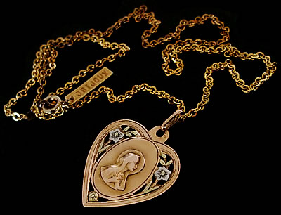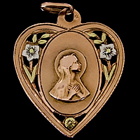 1920〜30年頃に製作されたK18製(OR750/18金製)のハートモチーフのアンティークメダイです。