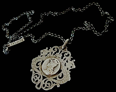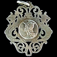 1900年代前半に製作されたフレームの繊細な“すかし”がとても素敵なアンティークメダイです。