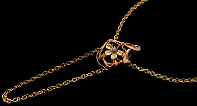 1900年頃に製作されたアール・ヌーボー期を彷彿させる素敵なアンティークチャームです。中央にはシードパールが施されています。