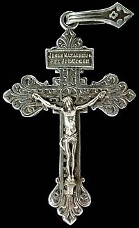 1900年代前半頃に製作された表裏共に繊細な彫刻が印象的なアンティーククロスとアンティーク鍵の2点セットです。