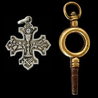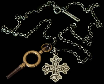 セットのアンティークキーは1900年代前半のもので、鍵モチーフのアクセサリーは【幸せ】を呼び込むシンボルとも言われており、クロスチャームとの相性もピッタリです♪