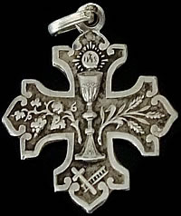1900年代前半頃に製作された神秘的な聖杯の彫刻が印象的なシルバー製のアンティーククロス