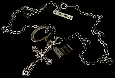 セットのアンティークキーは19世紀のもので、鍵モチーフのアクセサリーは【幸せ】を呼び込むシンボルとも言われており、クロスチャームとの相性もピッタリです♪