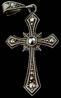 1900年代前半頃に製作されたヨーロッパで黒いダイヤモンドとも呼ばれているMarcasite(マーカサイト)が施されたアンティーククロスとアンティーク鍵の2点セットです。