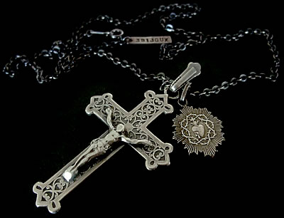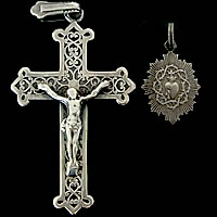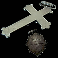 1900年代前半に製作された大変ボリュームがありながらも繊細な彫刻が素敵なアンティーククロスとアンティークメダイの2点セットです。