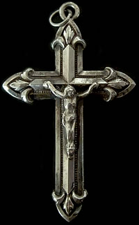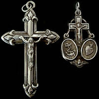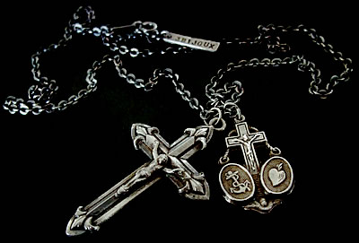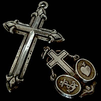 1900年代前半に製作された先端のユリのシンボルが印象的なアンティーククロスとアンティークチャームの2点セットです。