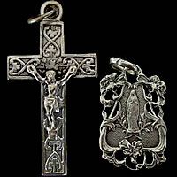 1900年代初期に製作された小さいながらも繊細なクローバーのデザインがとっても素敵なアンティーククロスとアンティークメダイの2点セットです。