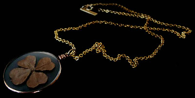 1900年代中頃に製作された本物の四つ葉のクローバーが収められた貴重なアンティークチャームです。
