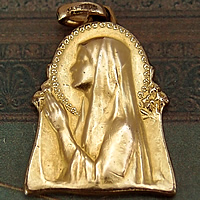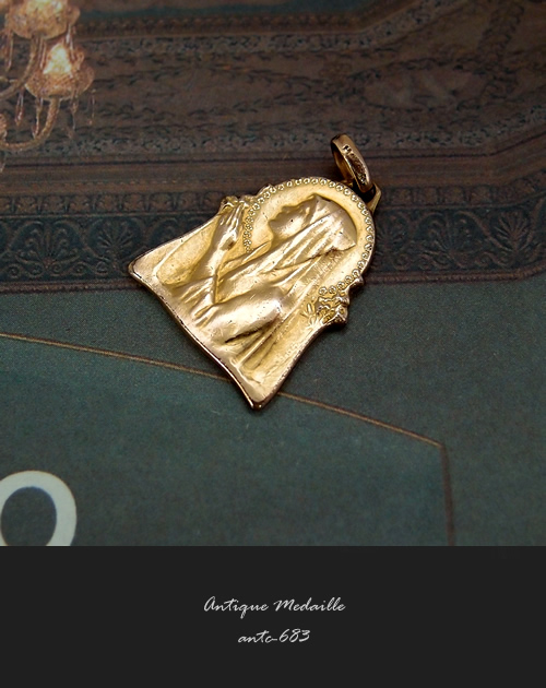 1920年頃に製作された、美しいフレームデザインと、繊細に描かれた聖母マリアのモチーフが大変素敵な18金コーティング製の