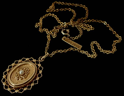 裏面にロケットのフタがあり写真などを入れることができます。オモテ面の中心にはパールが施されています。