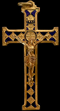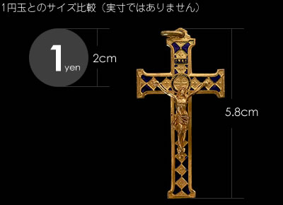 1900年代前半頃と見られるアンティーククロスです。クロスの暗く見える部分には濃紺の七宝が施されています。