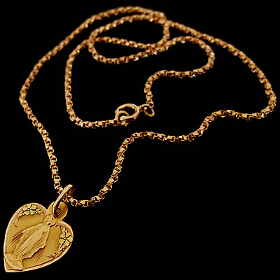 1914年頃に製作されたK18製(OR750/18金製)のハートモチーフのアンティークメダイです。