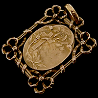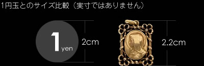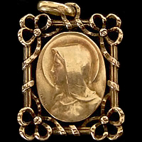 1900年代前半頃に製作されたゴールドコーティング(FIX刻印)製のアンティークメダイです。繊細なフレームの装飾が素敵です。