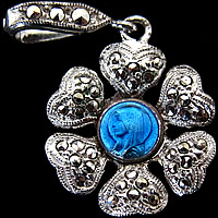 ヨーロッパで黒いダイヤモンドとも呼ばれているMarcasite(マーカサイト)が全体に施されており、ハート型の花びらによってデザインされたフラワーモチーフがなんとも可愛らしい1点です♪