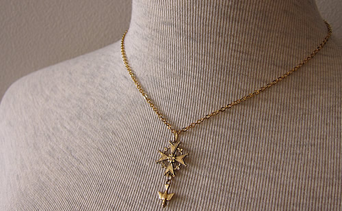 花やユリなどの可愛い装飾のクロスと、小さな揺れるハトとのコラボレーションがとっても可愛いチャームです♪