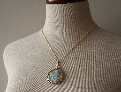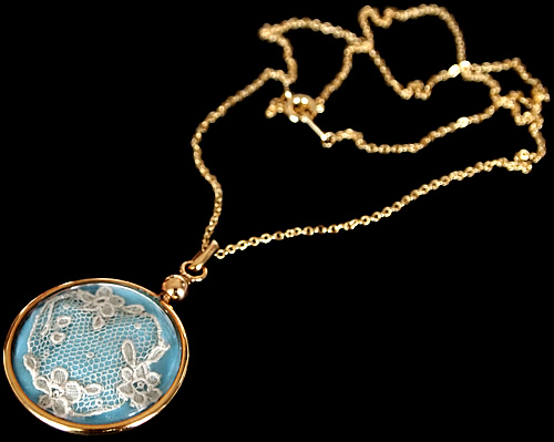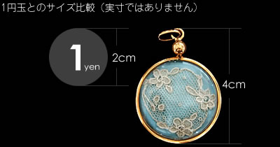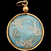 ペンダントの中には繊細な刺繍が素敵なアンティークレースが入った珍しいチャームです。