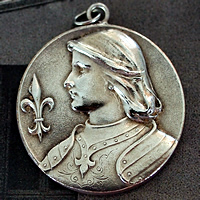 1900年代初期頃に製作されたフランスの英雄かつ聖女のジャンヌ・ダルクが描かれたのアンティークメダイです。