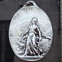 1900年代初期頃に製作された丁寧に描かれた女性の姿が印象的なアルミ製のアンティークチャームです。