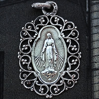 不思議のメダイと同様の聖母マリアのモチーフが描かれたシルバー製のアンティークメダイです。
