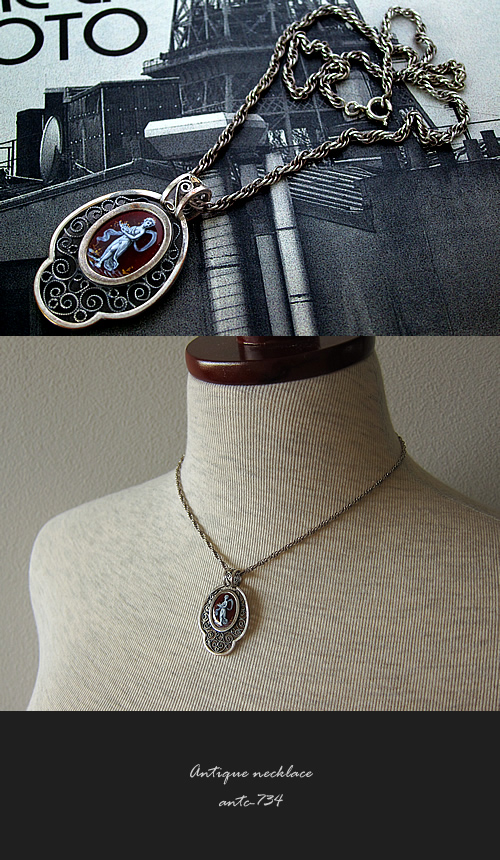 が印象的なアンティークネックレス(シルバー製のアンティークチェーンセット)です。