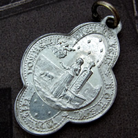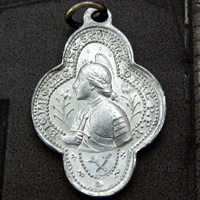 1900年代初期頃に製作されたフランスの国民的英雄であり、聖女でもある「ジャンヌ・ダルク」が描かれたアルミ製のアンティークメダイです。