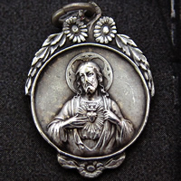 1900年代初期頃に製作されたとても丁寧に描かれた繊細なイエス・キリストの表情が印象的なアンティークメダイです。