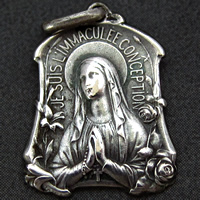 1900年代初期頃に製作された丁寧に描かれた聖ベルナデッタが印象的なアンティークメダイです。