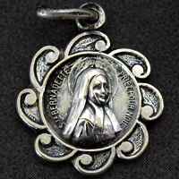 1900年代初期頃に製作された表裏共に異なる姿の聖ベルナデッタが描かれ、装飾フレームも素敵なアンティークメダイです。