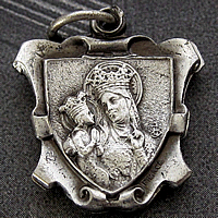 1900年代初期頃に製作された、聖母子の繊細なレリーフと、希少なスライド構造が印象的なアンティークメダイです。