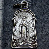 1900年代初期頃に製作された、繊細な聖母マリアのレリーフが素敵なアンティークメダイです。