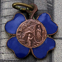 1900年代初期頃に製作された、聖地ルルドの泉と、幸運のシンボル四葉のクローバーをモチーフにした希少なアンティークメダイです。