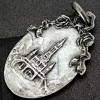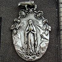 1900年代初期頃に製作された薔薇のレリーフとともに繊細に描かれた聖母マリアが印象的なアンティークメダイです。