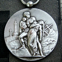 製作された、とても美しいレリーフが印象的な銀製(側面に銀の刻印:ARGENT)のフランスのメダル(勲章)です。本来はペンダントではありませんが、チェーンを通して利用しても素敵かと思います♪